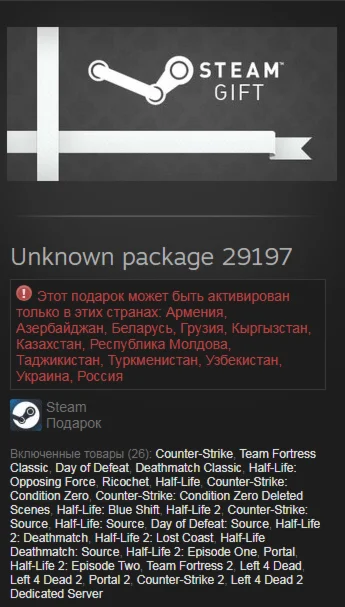 Данный Гифт может быть активирован в следующих странах: