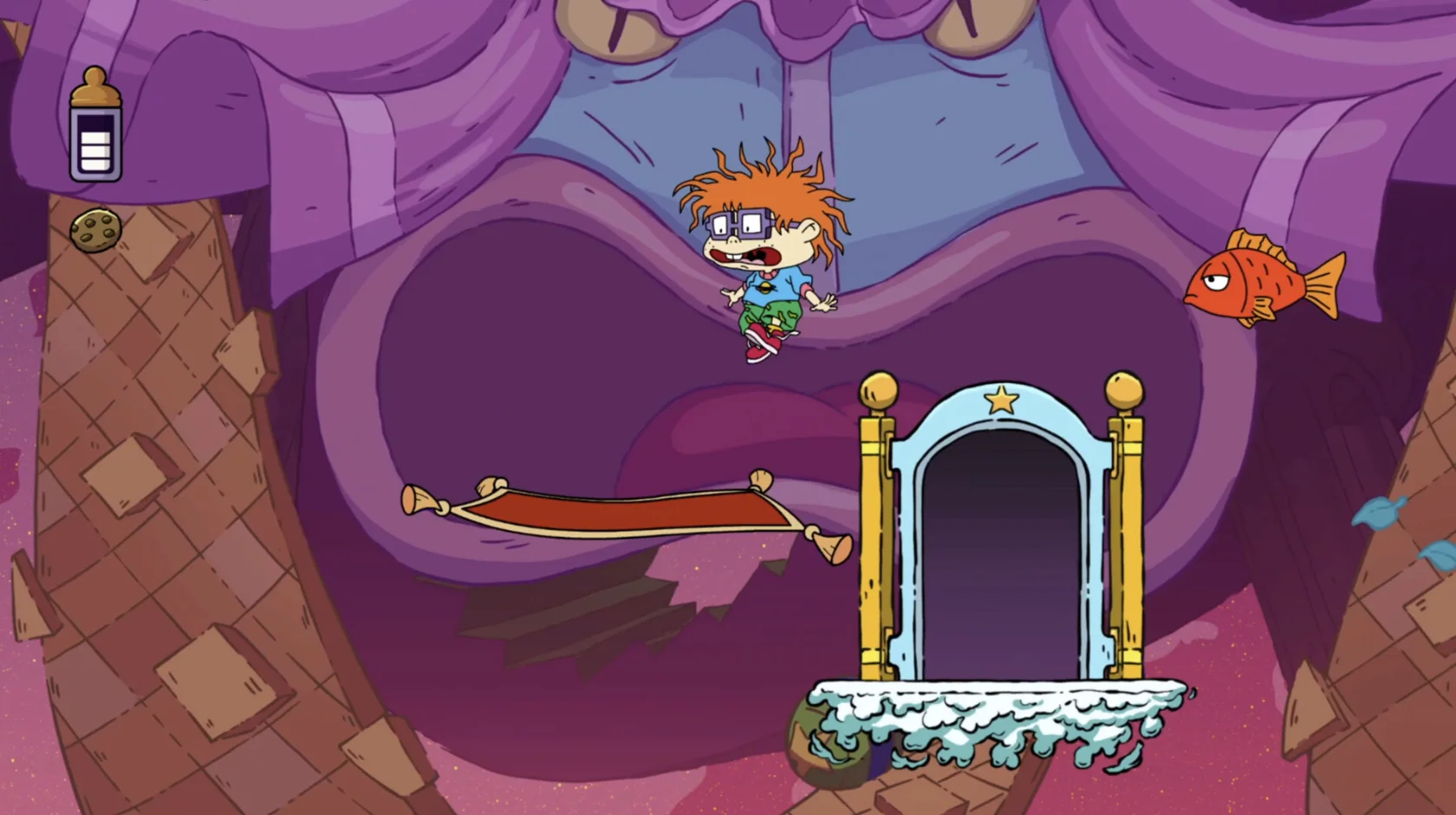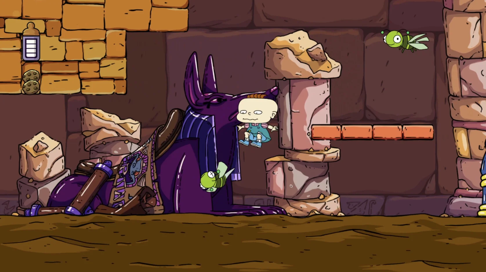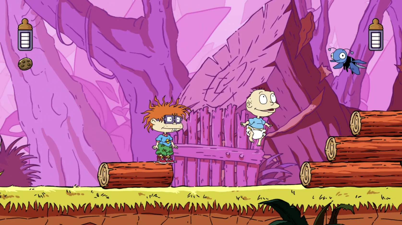 Когда Томми, Чаки, Фил и Лил видят рекламу новой видеоигры Reptar, они делают вид, что находятся в своей собственной видеоигре! Переключайтесь между прекрасным 8-битным и HD-артом, выбирайте любимого малыша и играйте в одиночку или в кооперативе в Rugrats: Adventures in Gameland, платформере в стиле нео-ретро.