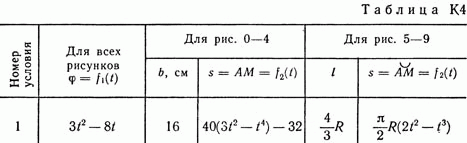 Решение контрольной К4 Вариант 11. Задание для задачи К4: Прямоугольная пластина (рис. К4.0 — К4.4) или круглая пластина радиуса R = 60 см (рис. К4.5 — К4.9) вращается вокруг неподвижной оси по закону фи = f1(t), заданному в табл. К4. Положительное направление отсчета угла фи показано на рисунках дуговой стрелкой. На рис. 0, 1, 2, 5, 6 ось вращения перпендикулярна плоскости пластины и проходит через точку О (пластина вращается в своей плоскости); на рис. 3, 4, 7, 8, 9 ось вращения OO1 лежит в плоскости пластины (пластина вращается в пространстве). По пластине вдоль прямой BD (рис. 0—4) или по окружности радиуса R (рис. 5—9) движется точка М; закон относительного движения, т.е. зависимость s = AM = f2(t) (s выражена в сантиметрах, t — в секундах), задан в таблице отдельно для рис. 0—4 и для рис. 5—9; там же даны размеры b и l. На всех рисунках точка М показана в положении, при котором s = АМ>0 (при s<0 точка М находится по другую сторону от точки А). Необходимо найти абсолютную скорость и абсолютное ускорение точки М в момент времени t1 = 1 с.
