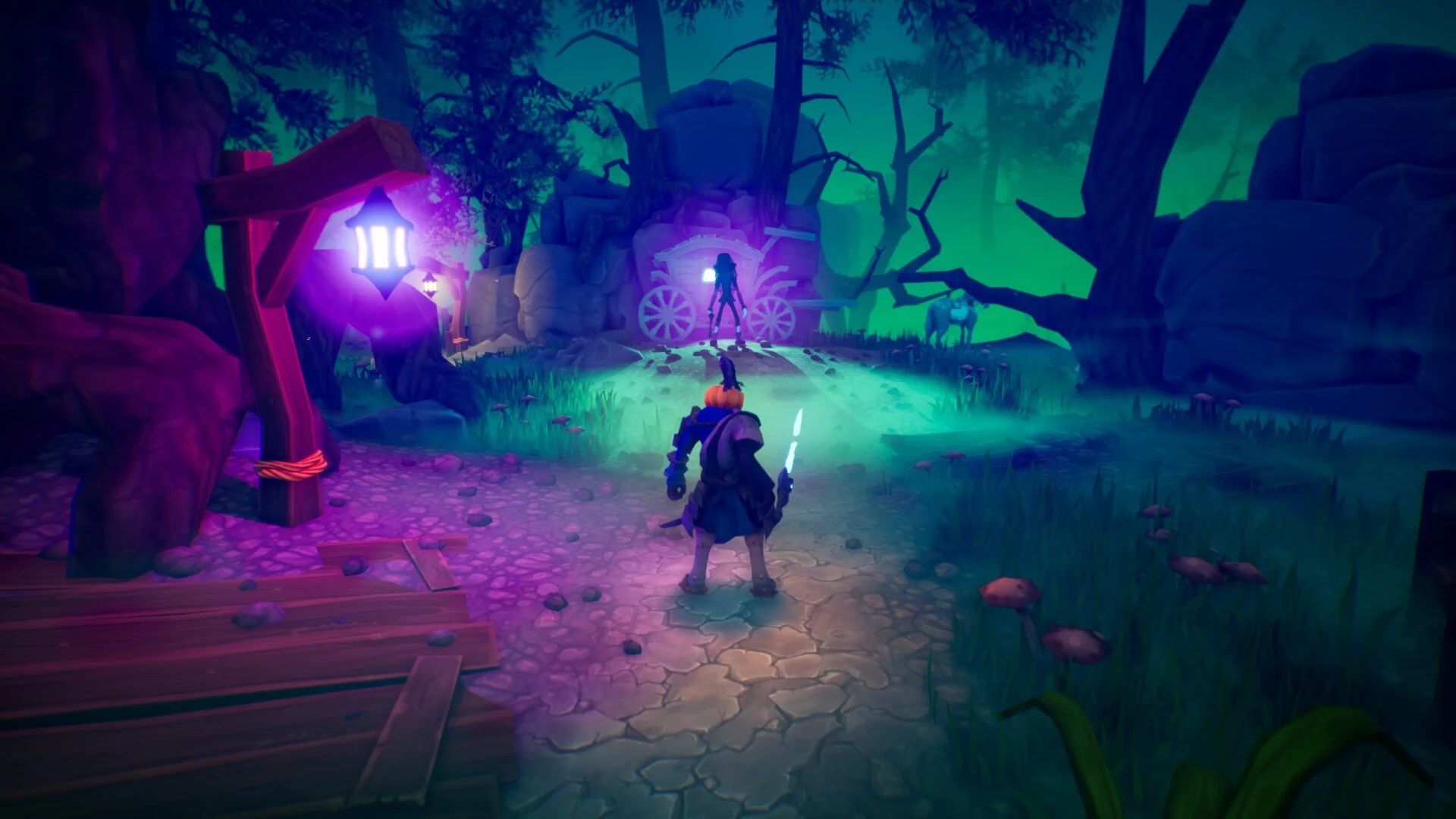 вас встретят грандиозные пейзажи! Атмосфера игры зловещая — и на каждом уровне своя. Используя яркую палитру и восхитительные световые эффекты, Pumpkin Jack изобретает собственную уникальную вселенную в классическом стиле графики PS2.