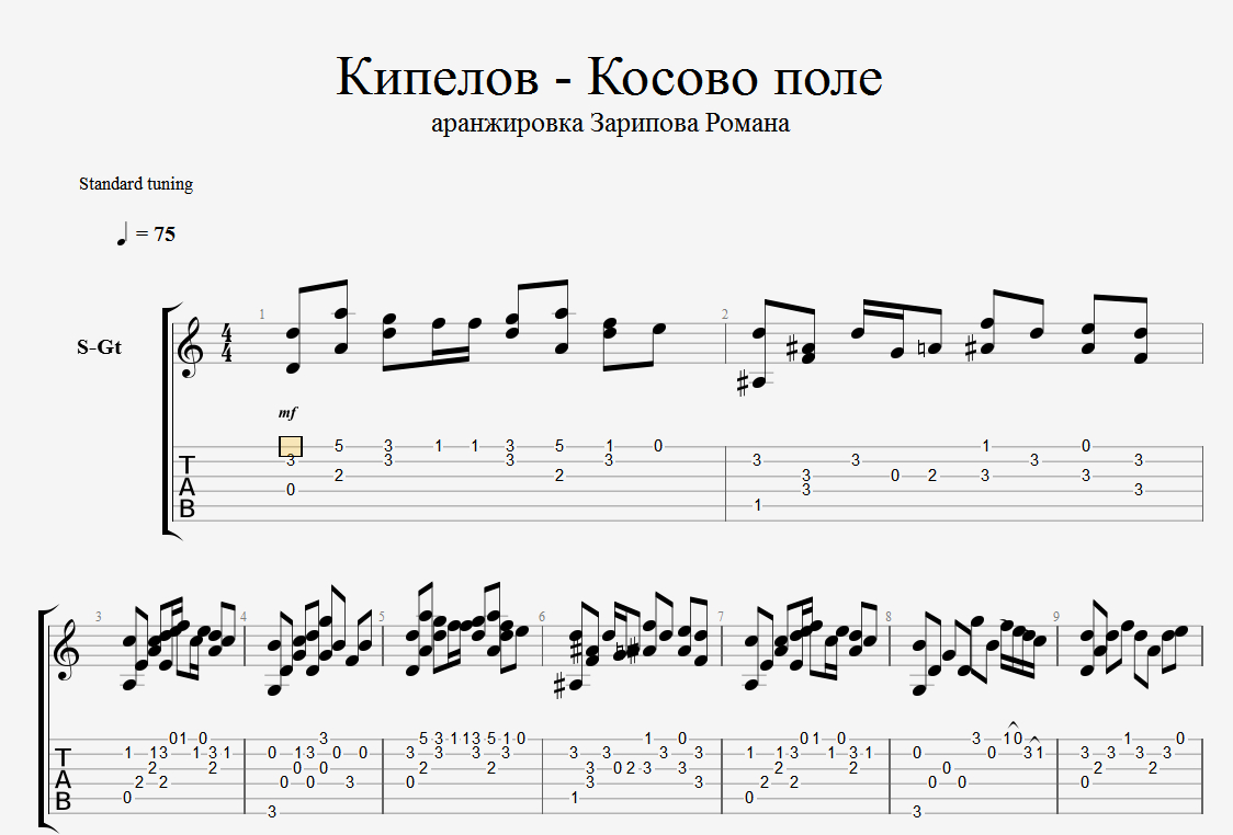 Моя аранжировка для гитары на песню Косово поле (Кипелов) в форматах guitar pro (gpx) и pdf