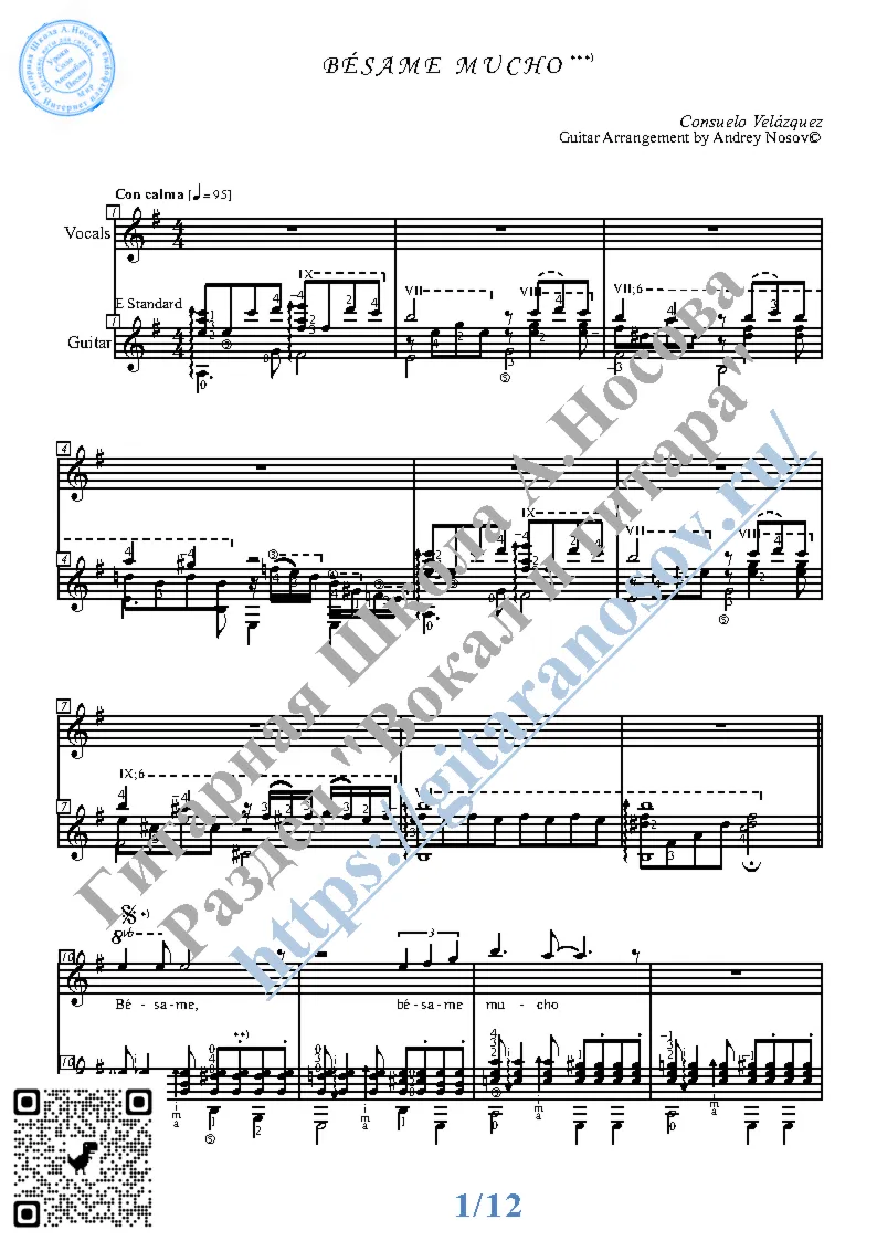 Купить Besame Mucho (Вокал Гитара Ноты Табы)
