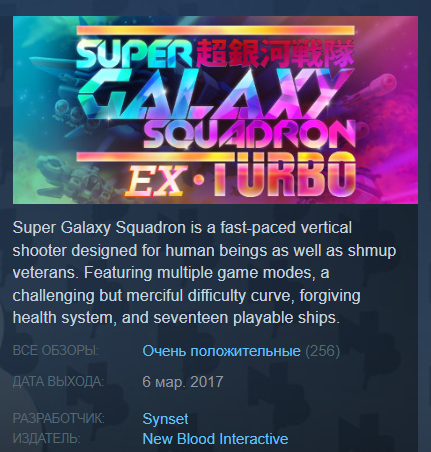 Страница игры в Steam https://store.steampowered.com/app/345860/Super_Galaxy_Squadron_EX_Turbo