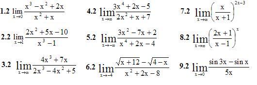 1.Найти указанные пределы (1-9) пределов