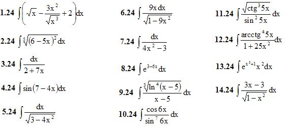1. Найти неопределенные интегралы (в заданиях 1-5 результаты интегрирования проверить дифференцированием). (1-14)