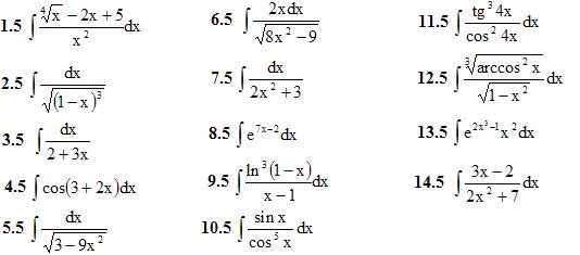 1. Найти неопределенные интегралы (в заданиях 1-5 результаты интегрирования проверить дифференцированием). (1-14)