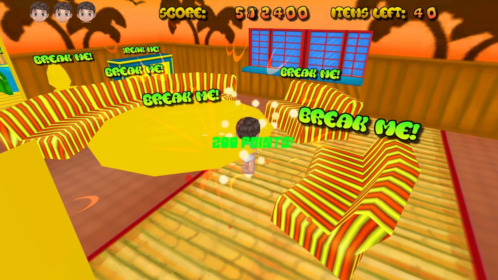 It's time for bed and little Johnny disagrees. Take control of Johnny during his temper tantrum and bring destruction into every household he encounters on his rampage. Perform fast paced twists and turns as you break everything in sight, but be sure to avoid Mr. NightNight, Mr. Sleepytime, and Mr. Boogerman or you'll be forced to take a nap! Eat candy you find as you crack open furniture to start a sugar rush. While on your sugar rush, show Mr. NightNight it's his turn for a nap! Now With Steam Trading Cards!