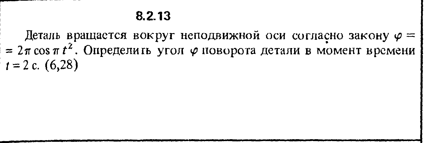 Деталь вращается вокруг неподвижной оси согласно закону φ = 2πcosπt2. Определить угол φ поворота детали в момент времени t = 2 с.