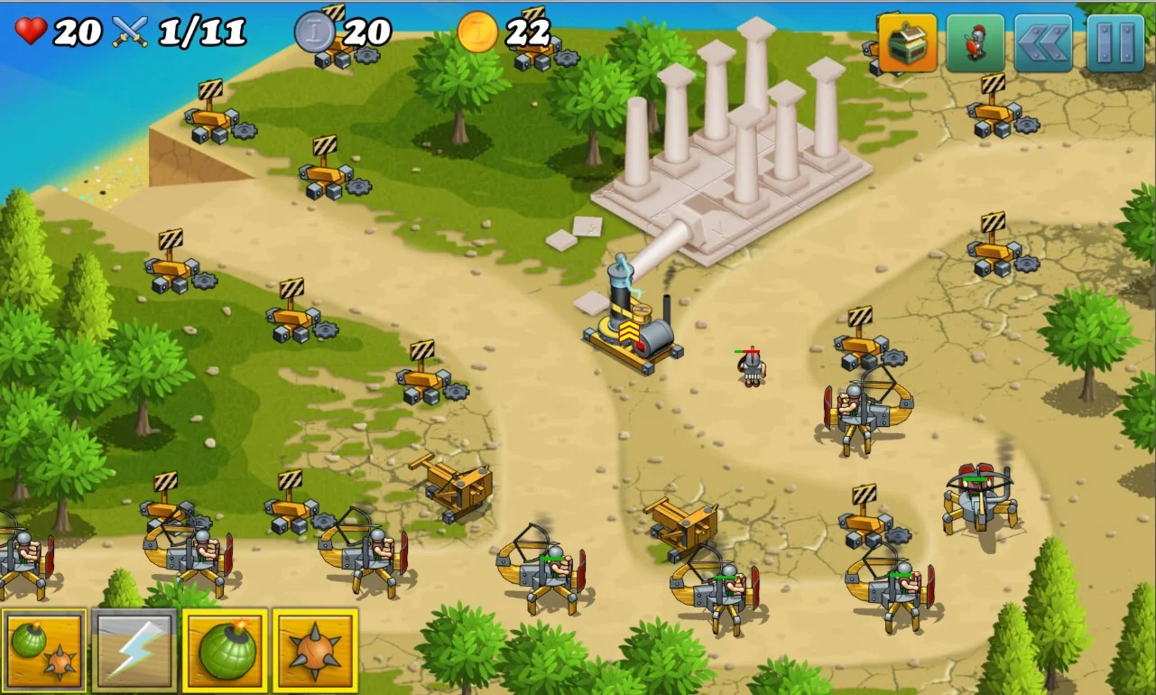 Увлекательная игра жанра "Tower Defense" в сеттинге древней Греции.Красочная графика, увлекательный сюжет, интереснейший геймплей !Занятное сочетание эпохи Древней Греции, паровых машин и механизированных роботов не оставят Вас равнодушными.Стройте мощные орудия, планируйте стратегию защиты, пройдите путь от новобранца до генерала ! Грандиозные сражения с огромным количеством юнитов на уровнях. Множество тактик, разные уровни сложности прохождения. Уникальная система улучшений пушек и орудий.