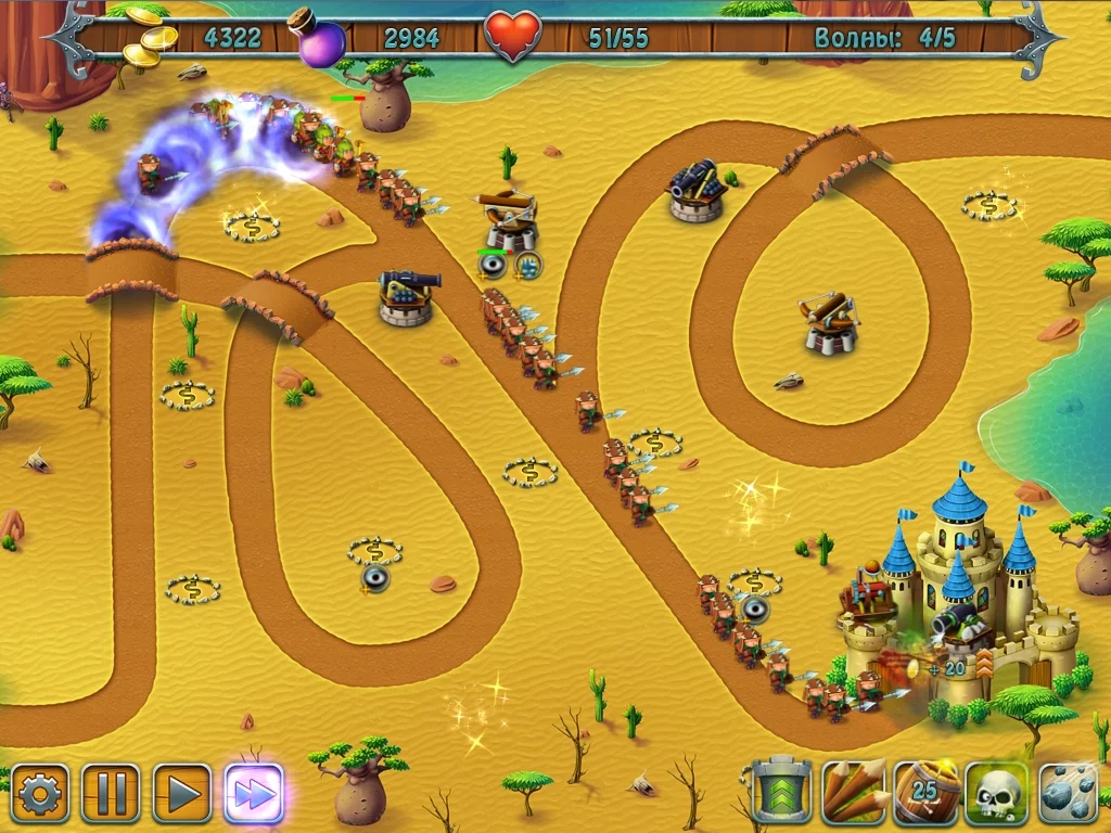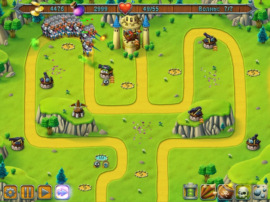 Защити родовой замок — покажи захватчикам, кто здесь хозяин! Строй башни, копи деньги, качай заклинания, и враг будет повержен.Средние века — смутное время. Всякий сосед так и норовит покуситься на твои законные земли. Не дай врагам повод думать, что ты слабее их!Защити свой замок от набегов воинственных соседей! В твоем распоряжении орудийные башни, деньги, эффективные заклинания и твое собственное стратегическое мышление! 40 уровней различной сложности, уникальные юниты, 12 видов башен и сооружений. Ход сражения зависит только от тебя!