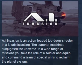 AI Invasion is an action-loaded strategic top-down shooter in a futuristic setting. The superior machines subjugated the universe. In a wide range of missions you takes the role of a soldier to defend bases, escort convoys through enemy territory and reclaim occupied outposts.