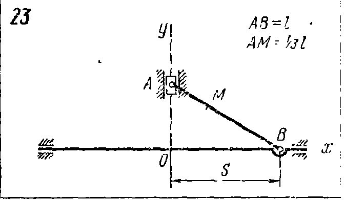 Решение задачи К2 Вариант 23 из решебника по теоретической механике Яблонский А.А. 1978 г., на тему: К2 Составление уравнений движения точки и определение ее скорости и ускорения (стр. 81).