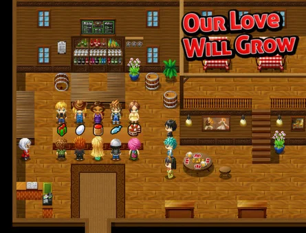 Our Love Will Grow is a farming game in the style of Harvest Moon with a different party to attend each week. Grow your farm, uncover secrets, and attract girls by presenting them with food and jewellery you make yourself.