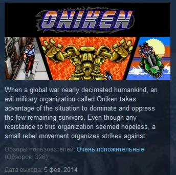 Oniken is an action platform game highly inspired by the 1980's, its games and its movies. You can see this not only in the graphics and sound design, but also in Oniken's story and difficulty.