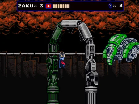 When a global war nearly decimated humankind, an evil military organization called Oniken takes advantage of the situation to dominate and oppress the few remaining survivors. Even though any resistance to this organization seemed hopeless, a small rebel movement organizes strikes against Oniken. One day, a ninja mercenary named Zaku offers his services to the resistance for unknown reasons. His moves are lethal and now he is the resistance's only hope.