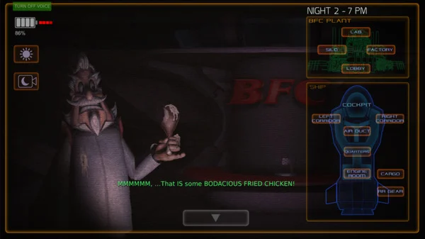 This is a Five Nights at Freddy's style parody game with some new mechanics, fun artwork, humor and VO based on characters from the upcoming adventure game, SpaceVenture, being released by the Two Guys From Andromeda(original creators of the Space Quest series)