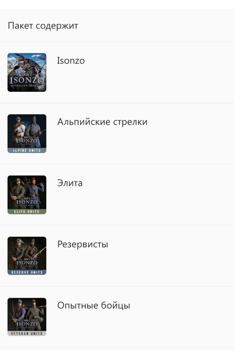 ????Коллекционный выпуск Isonzo включает в себя множество возможностей для изменений внешности: 140 предметов из четырех дополнений — Элита, Опытные бойцы, Резервисты и Альпийские стрелки. Десятки униформ, аксессуаров и усов, благодаря которым ваши бойцы будут выделяться на поле боя. ????