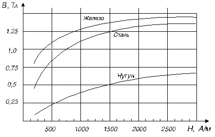 48. Соленоид имеет стальной полностью размагниченный сердечник объемом V = 500 см3. Напряженность магнитного поля соленоида при силе тока I = 0,5 А равна H = 1 кА/м. Используя рисунок, определить индуктивность соленоида.
