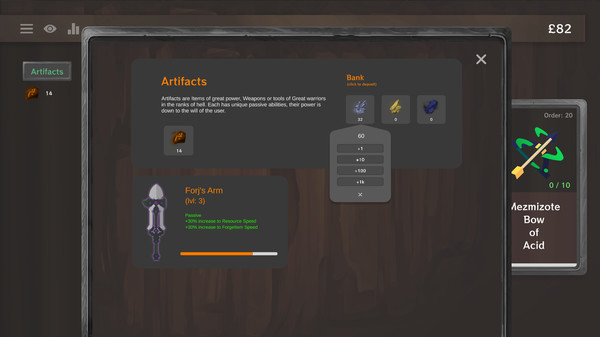 The war between Hell and the Above needs a constant supply of weapons. Manage your resources and craft a variety of magical items.