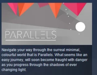 Journey through the utterly surreal, simplistic and colourful world that is Parallels. What seems like an easy relaxed journey in the beginning, is destined to become fraught with danger as you progress through the Parallel paths of ever changing light.