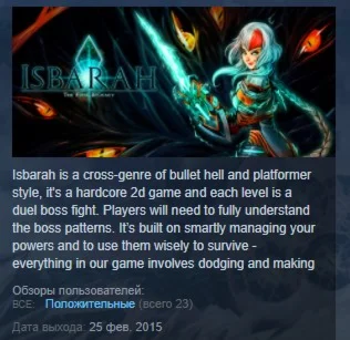 Isbarah — интересная смесь платформера и скроллинг-шутера, состоящая их нескольких сложнейших уровней, каждый из которых заканчивается эпическим сражением с боссом. Каждый такой босс обладает уникальными характеристиками, что делает достижение победы над ним еще более трудным. Лучшими вашими союзниками в хардкорных баталиях станут навыки, смекалка и увертливость. Только так можно выжить в этой суровой игре. Да начнется битва!
