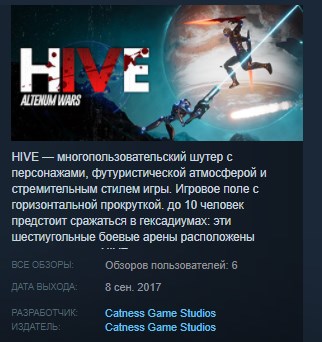 HIVE — многопользовательский шутер с персонажами, футуристической атмосферой и стремительным стилем игры. Игровое поле с горизонтальной прокруткой. Игрокам (до 10 человек) предстоит сражаться в гексадиумах: эти шестиугольные боевые арены расположены внутри планеты HIVE и разделены на шесть зон, каждая со своей гравитацией. Персонажи, которыми управляют в HIVE, или гексадьеры, обладают различными способностями и оружием в соответствии со стилем игры каждого игрока. HIVE — многопользовательский шутер с персонажами и футуристической атмосферой. Поле с горизонтальной прокруткой — арена сражений для игроков (до 10 человек) — представляет собой ряд гексадиумов, шестиугольных арен для боя. Все они расположены внутри планеты HIVE и разделены на шесть зон, каждая со своей гравитацией. Череда платформ и открытых пространств превращают гексадиумы в поле ожесточенной битвы.