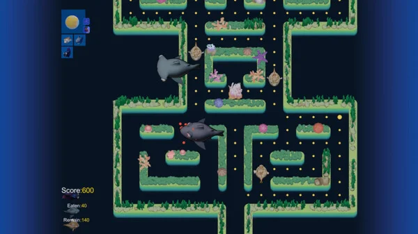 Help a tropical fish fight off ocean predators, survive in coral mazes, and find a way to eat all dots!