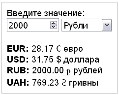 Купить Скрипт калькулятора конвертера валют руб, евро, дол #53