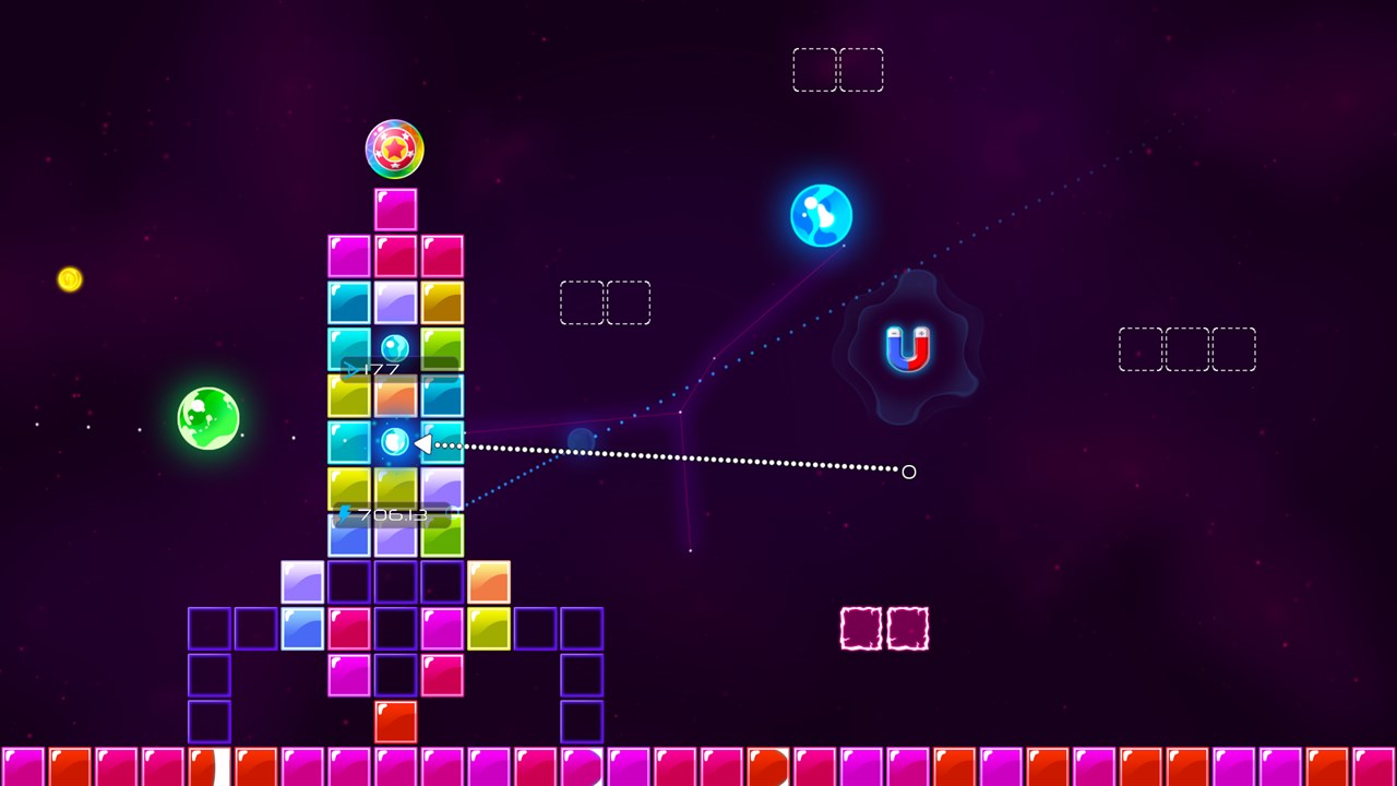 Стреляйте маленькими шариками, чтобы ударить по большим шарикам и блокам.