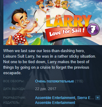 7) Leisure Suit Larry 7 - Love for Sail - https://store.steampowered.com/app/765890/Leisure_Suit_Larry_7__Love_for_Sail/
