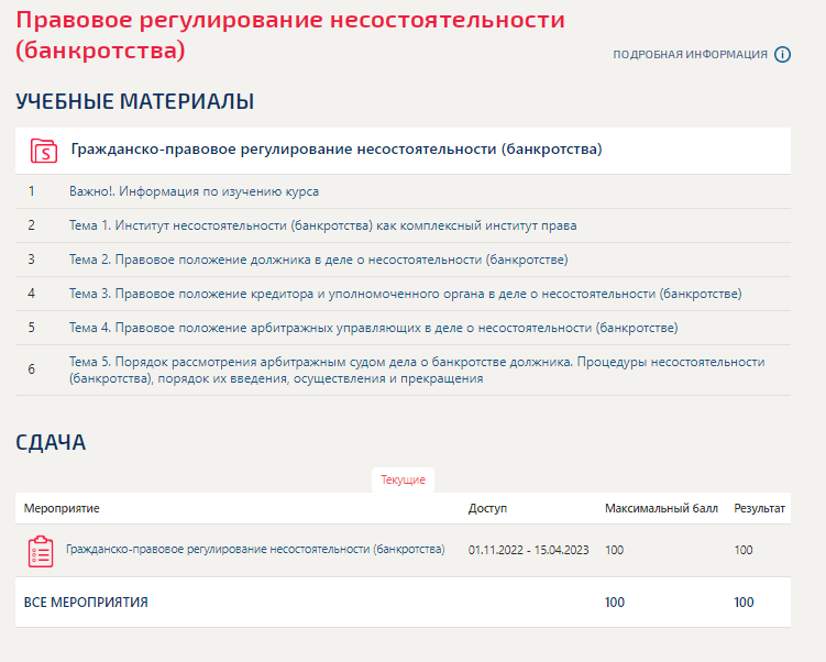 Правовое регулирование несостоятельности (банкротства).Тест Синергия 2023год (100баллов)