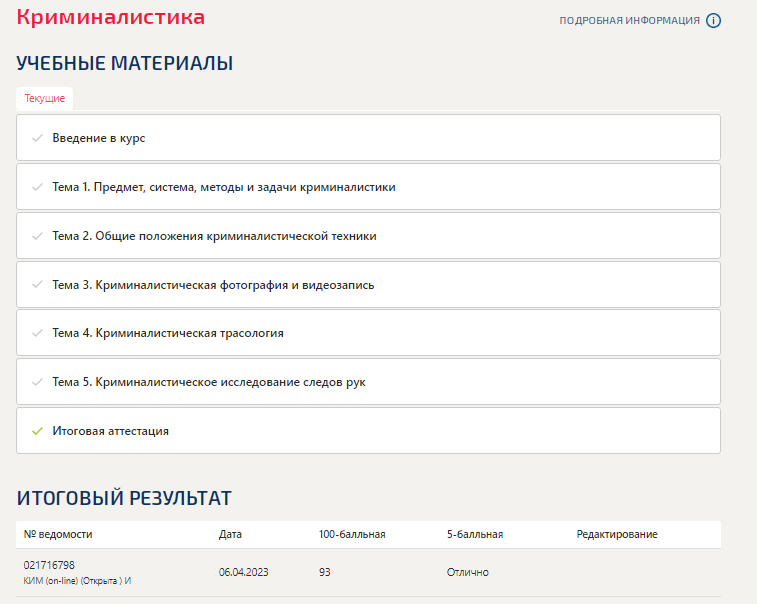 Криминалистика. Тест Синергия 2023г ( 58 вопросов, Итоговый и промежуточные)