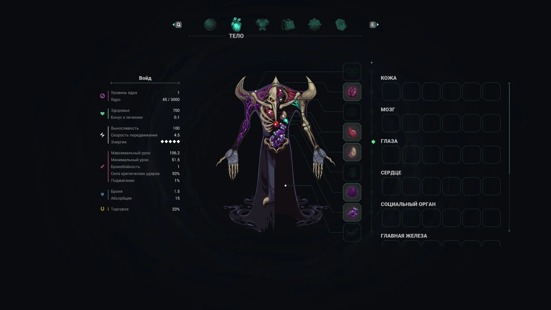 • Настройка персонажа: вживляйте в тело Вестника различные органы, которые дают уникальные пассивные способности и усиления боевых навыков.