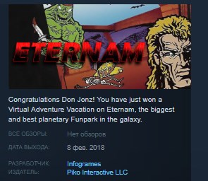Поздравления, Дон Джонз! Вы только что выиграли виртуальные приключенческие каникулы на Этернам, самом большом и лучшем планетарном парке развлечений в галактике.