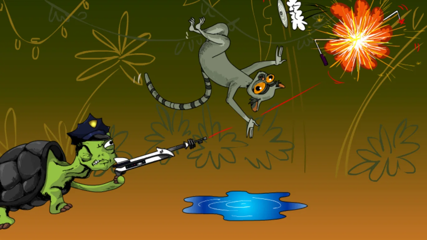 Lemurzin - это уникальная сумасшедшая аркада. Играй за безбашенного Лемурзина и собирай гамбургеры, колу, картошку и мороженное. Уворачивайся от опасных препятствий и выстрелов. И помни, что тебя постоянно будет преследовать черепаха, летящая на ракете со смертоносным оружием. Это крышесносящая игра от создателей не менее убойного мультфильма Kut Stupid.