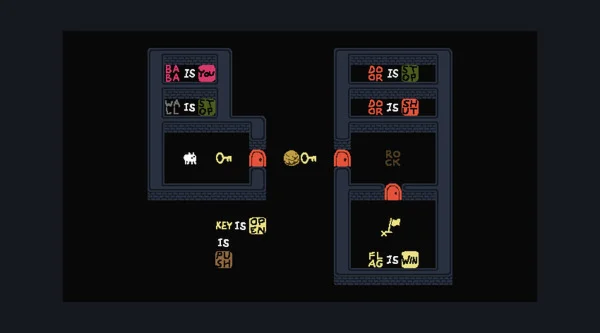 Baba Is You is a puzzle game where the rules you have to follow are present as blocks you can interact with. By manipulating them, you can change how the game works, repurpose things you find in the levels and cause surprising interactions!
