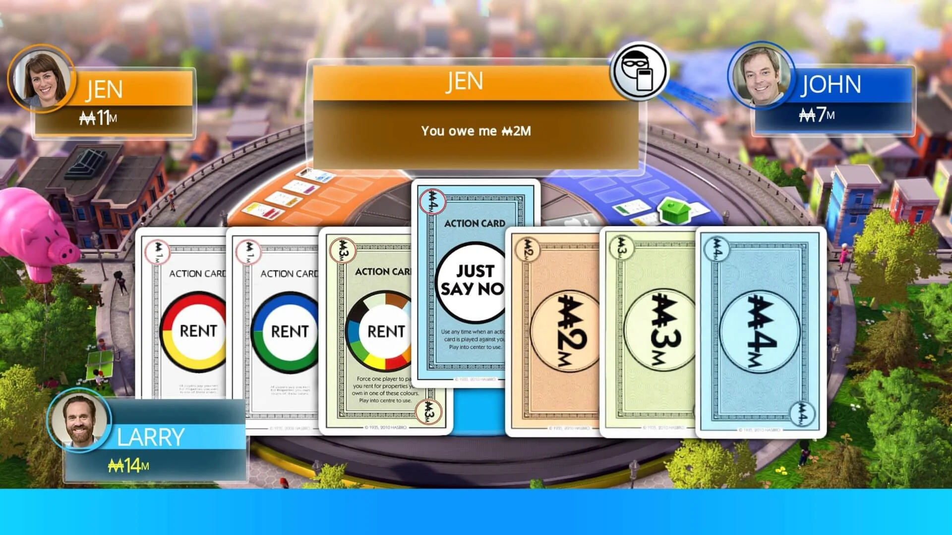 ????Состязайтесь в сети с друзьями или участниками сообщества, посвященного этой игре: крадите наборы карт, взыскивайте долги и станьте первым игроком, собравшим 3 полных комплекта собственности разных цветов. Постройте свою империю недвижимости, прибегнув к новым, быстрым методам!