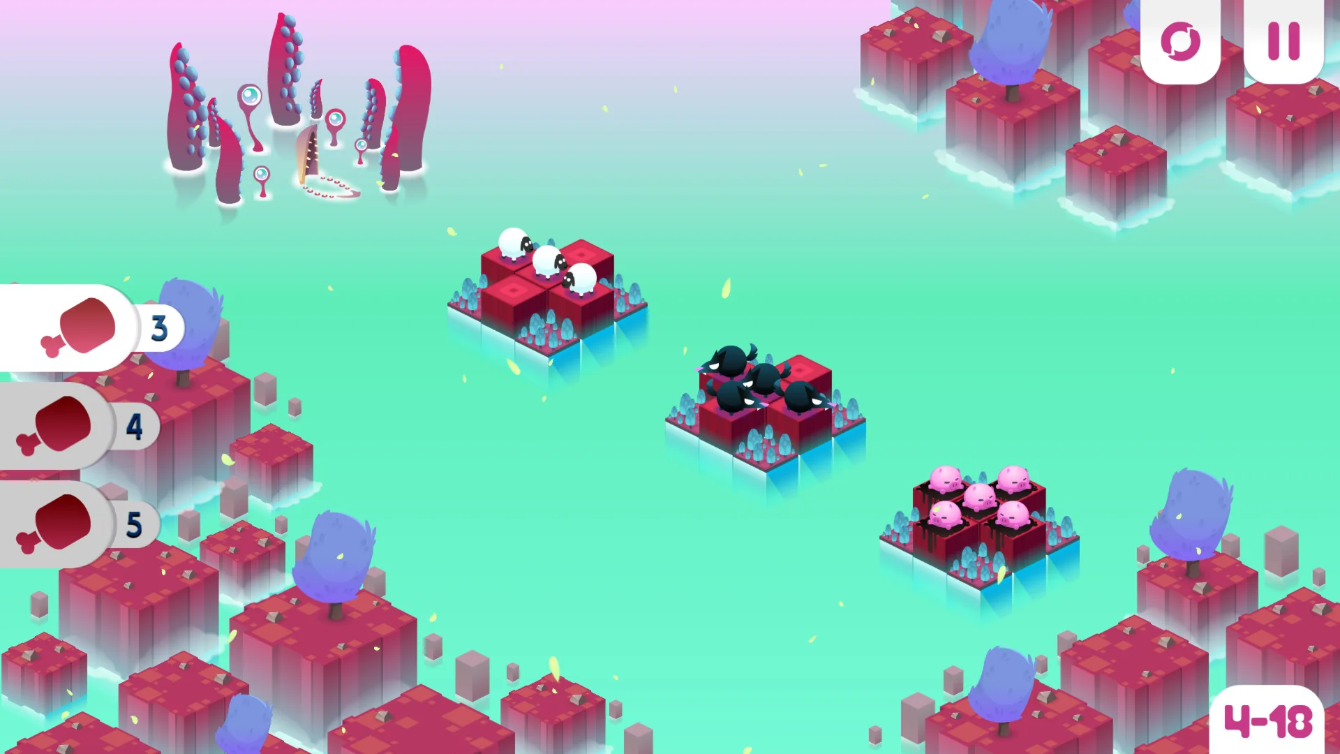????Вы спасаете маленьких животных, решая хитроумные математические головоломки. "Разделяй на овец" - это игра на сложение и вычитание любыми возможными способами, в которой головоломки начинаются довольно легко и игриво, но быстро перерастают в сложность и мрачный юмор.