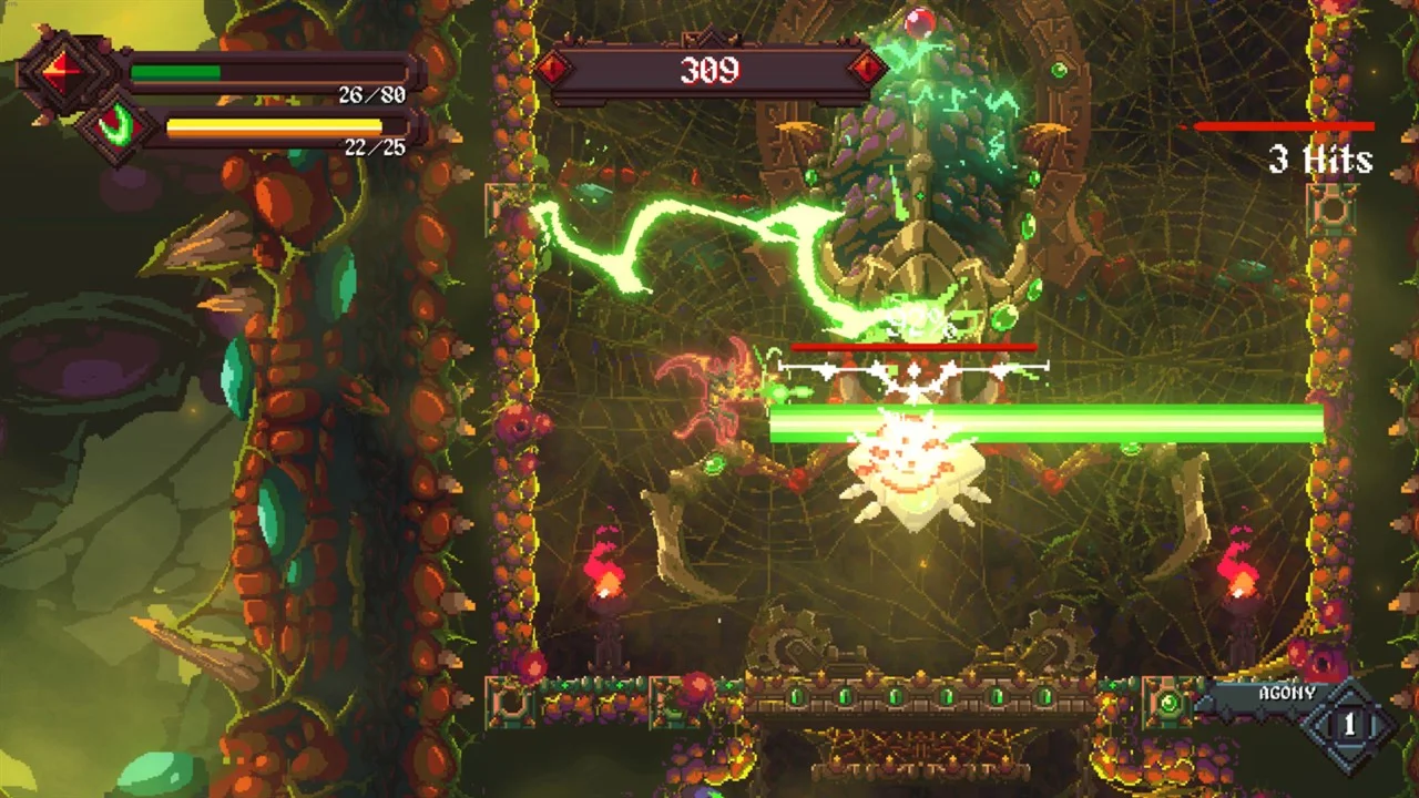 Heavy-metal riffs and pixelated madness will accompany you as you fight your way out from the depths of fiery hell, facing the bugs-ridden Beelzebub’s Lair, and other pits of hell with different creatures, bosses, and living traps lurking around. Chaining combos, jumping maneuvers, and talent building will be your key to help you climb your way out of hell in this adrenaline-pumping vertical platformer.