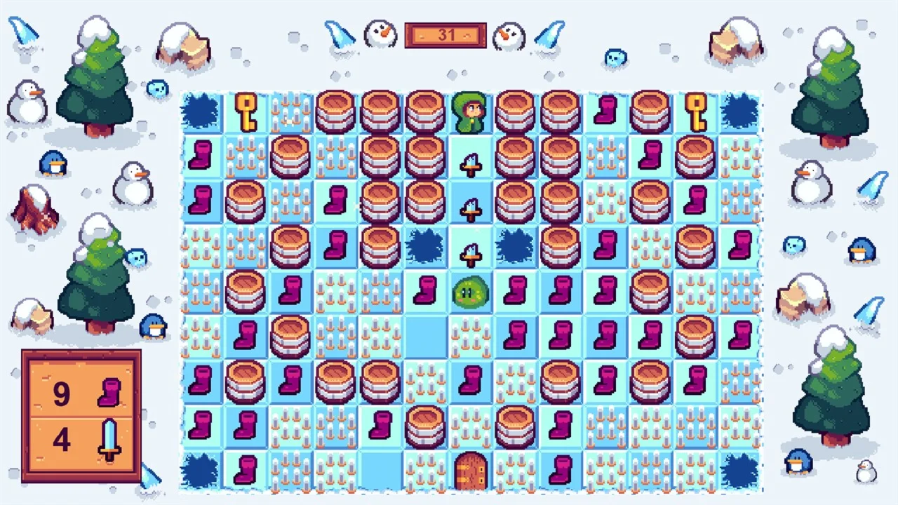 You are on a quest to find and defeat the Slime King. With a limited movement, you need to think carefully about every step until you reach the door. Push boxes, find keys, beware of traps, and slay every slime that get in your way!