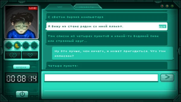 Квинн очнулся в закрытой комнате, где есть только компьютер, подключенный к чату, в котором находитесь вы. Вы стали его единственной надеждой. Ваши быстро принятые решения помогут ему сбежать... или поведут его по дороге, где всё закончится раз и навсегда.