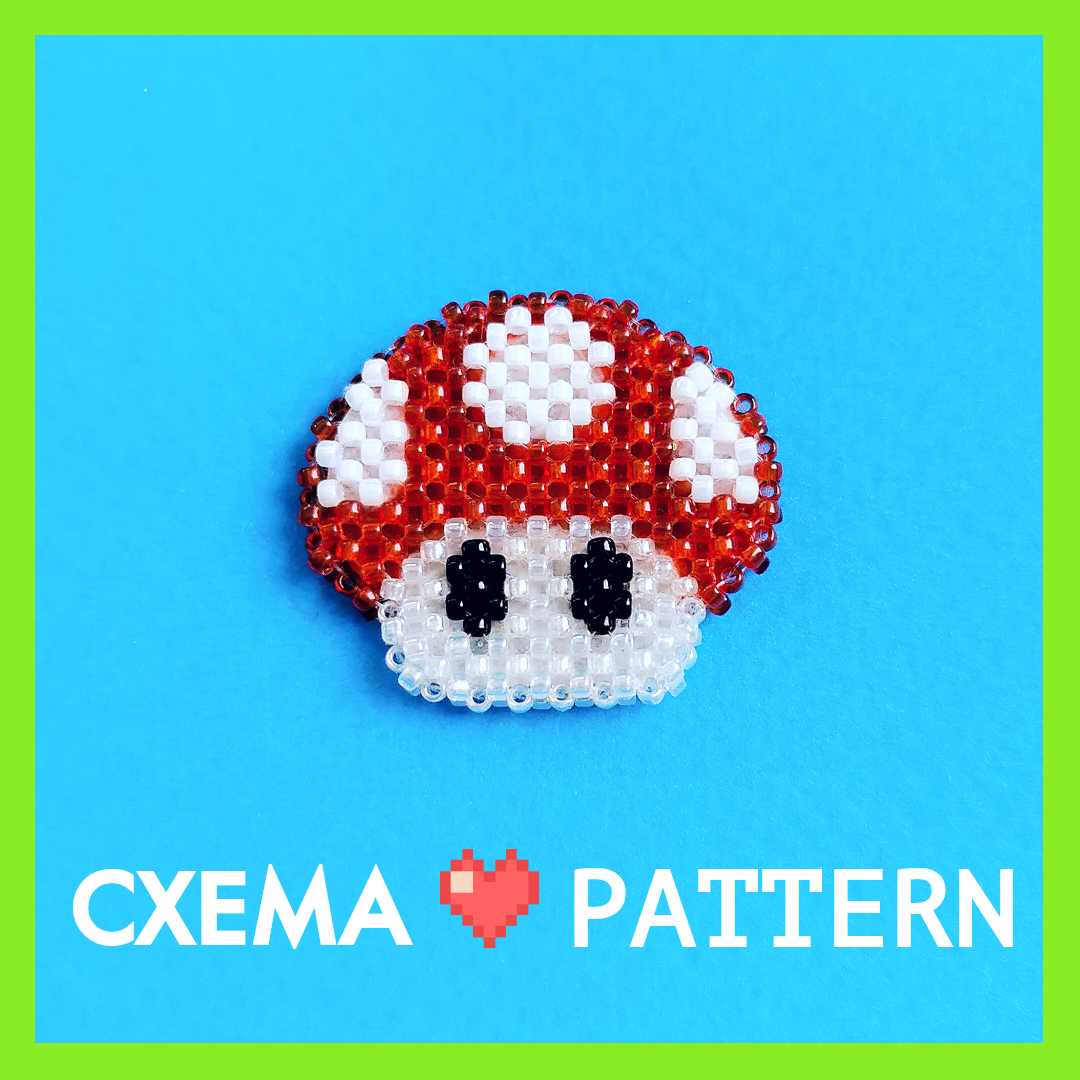 Вы получите схему "Тоад" (Super Mario Bros.) в технике Монастырское плетение (плетение крестиком) для бисера.