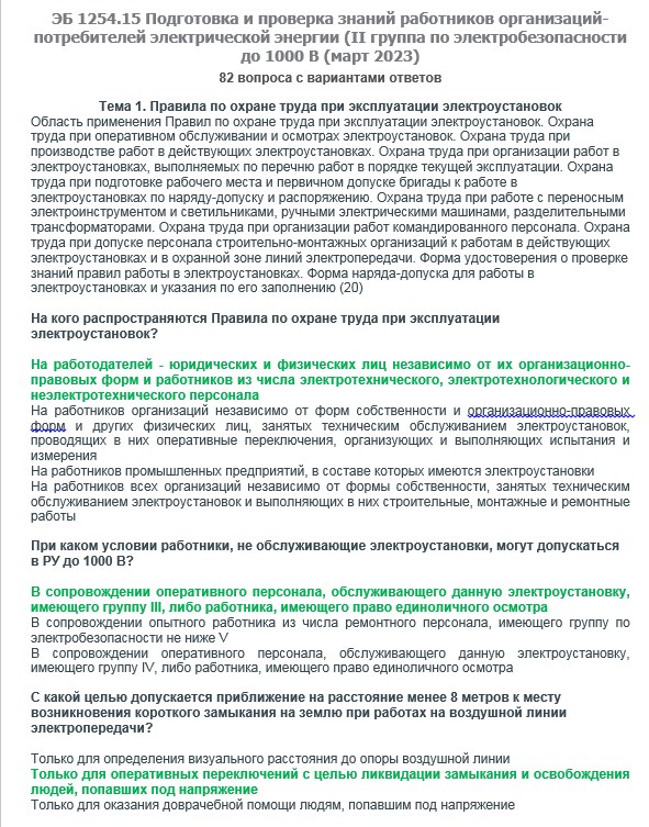 Вопросы с ответами к курсам ОКС-Олимп ЭБ 1254.15 (март 2023) Подготовка и проверка знаний работников организаций-потребителей электрической энергии (II группа до 1000В)