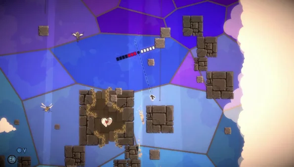 Ascend the crumbling ruins of a fallen kingdom by jumping, swinging, shooting, and teleporting your way through enemies and obstacles. New knowledge and abilities will aid you on your increasingly challenging skyward journey. It's like a reverse Downwell or a reverse-inverted finite Doodle Jump.