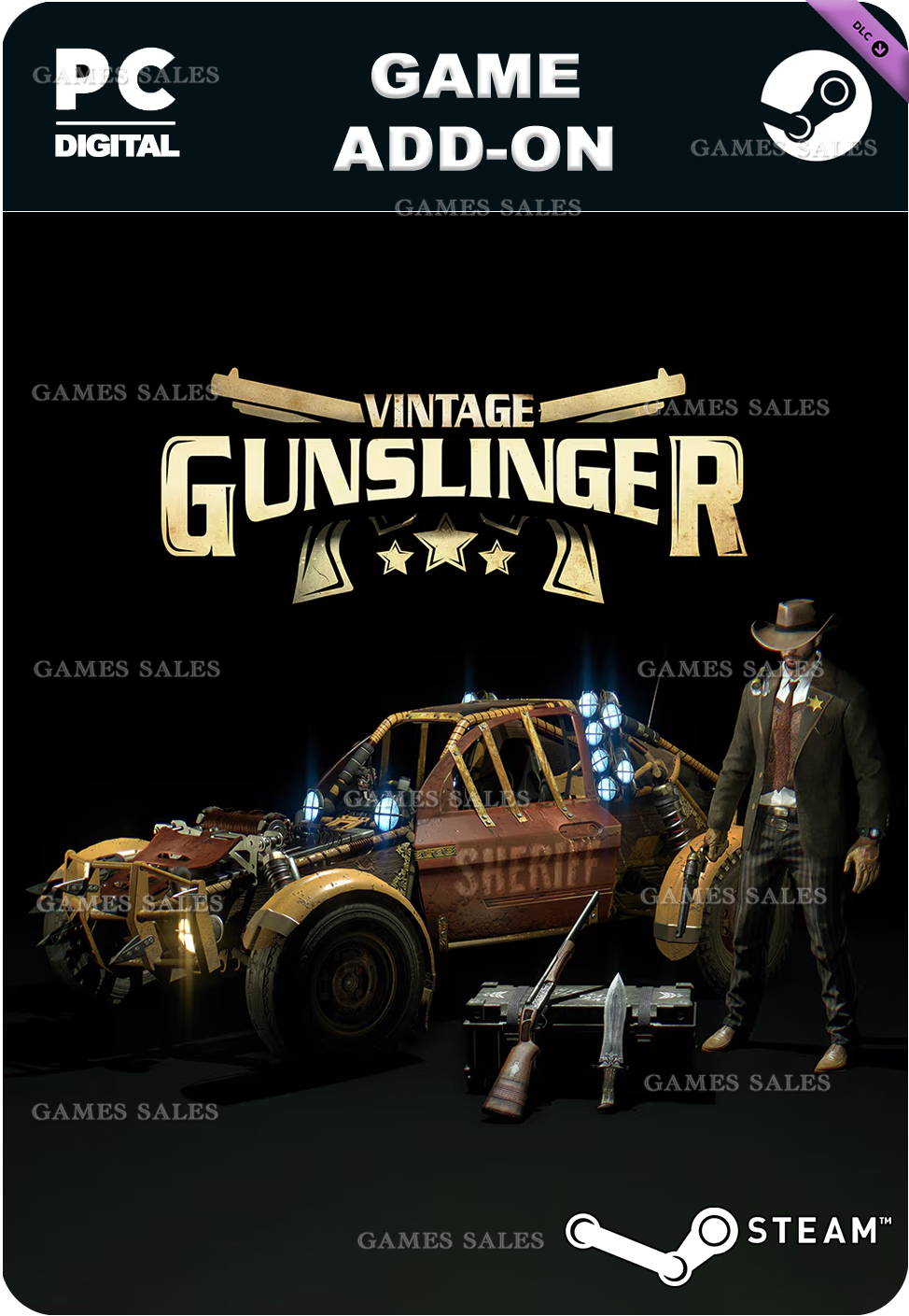 ==================================Что может быть лучше старых добрых законов Дикого Запада? Боритесь с преступниками в костюме шерифа, вооружившись «Клятволомом», «Ониксовым болтом» и «Помощником шерифа», а также патрулируйте улицы на машине «Золотой бык». В винтажный комплект стрелка входит новый костюм, новая окраска для машины и три чертежа оружия: ружья, револьвера и длинного ножа. Примечание: для поддержки этих предметов необходимо дополнение Dying Light: The Following.