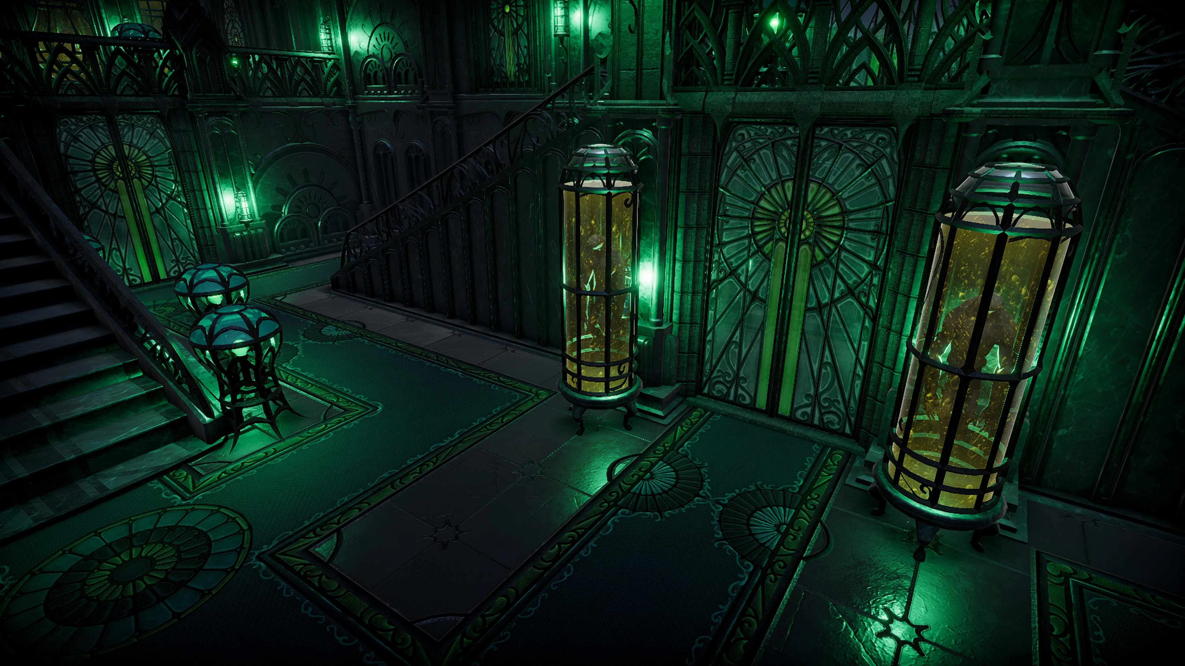 Пусть великолепные модернистские галереи зальет свечение бурлящих фонарей, наполненных биолюминесцентными составами. Украсьте залы прекрасной бронзой, полированным деревом и сияющим стеклом — вместилищем останков легендарных экспериментальных чудовищ. Наблюдайте за этим великолепием с высоты своего трона, величественно сияющего в витражном декоре.