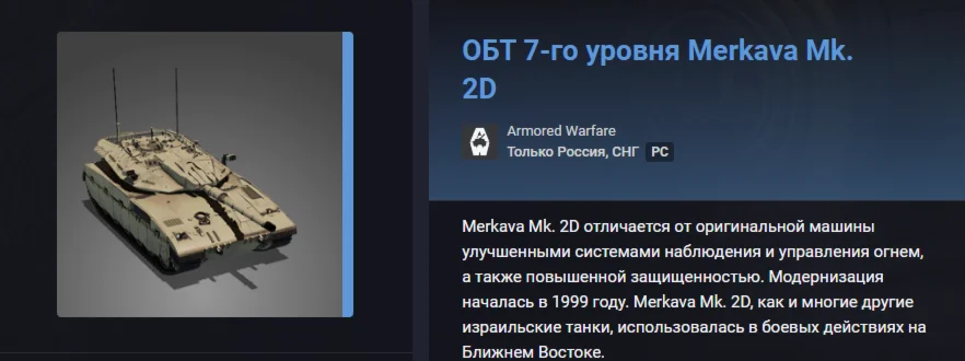 Armored Warfare: Проект Армата » ПремТанк ОБТ ОБТ 7-го уровня Merkava Mk. 2D