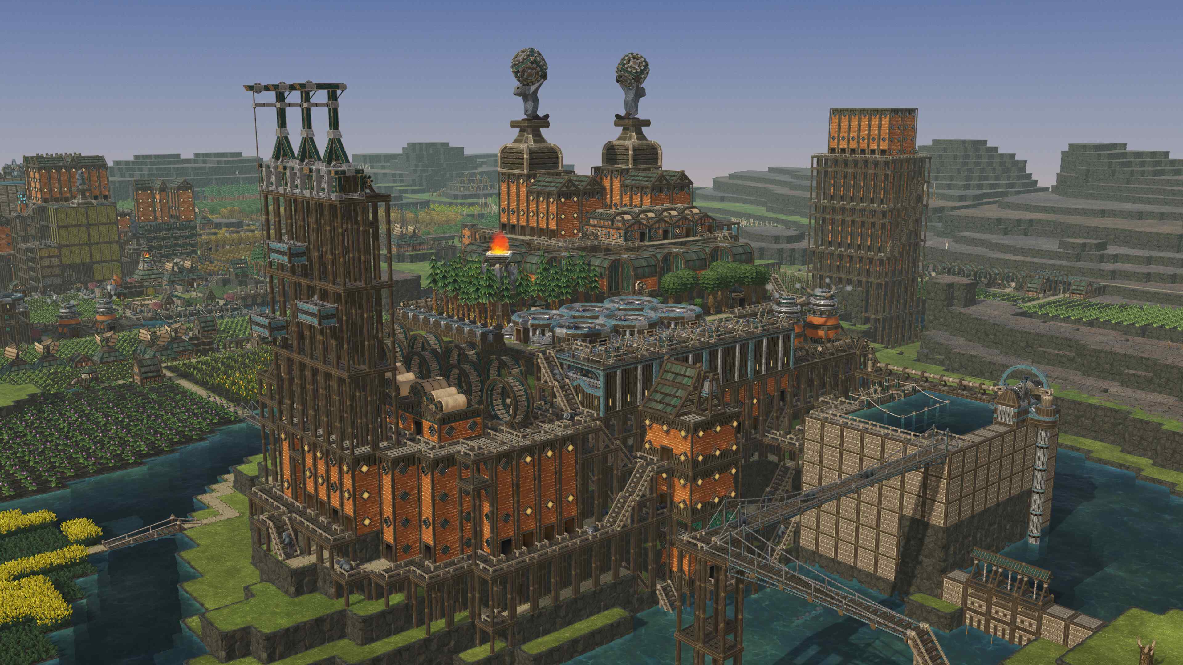 Пополните колонию механизированными бобрами. Проводите техобслуживание и получайте сверхэффективную рабочую силу. Они способны работать круглыми сутками даже в самых опасных условиях.Высотная архитектура