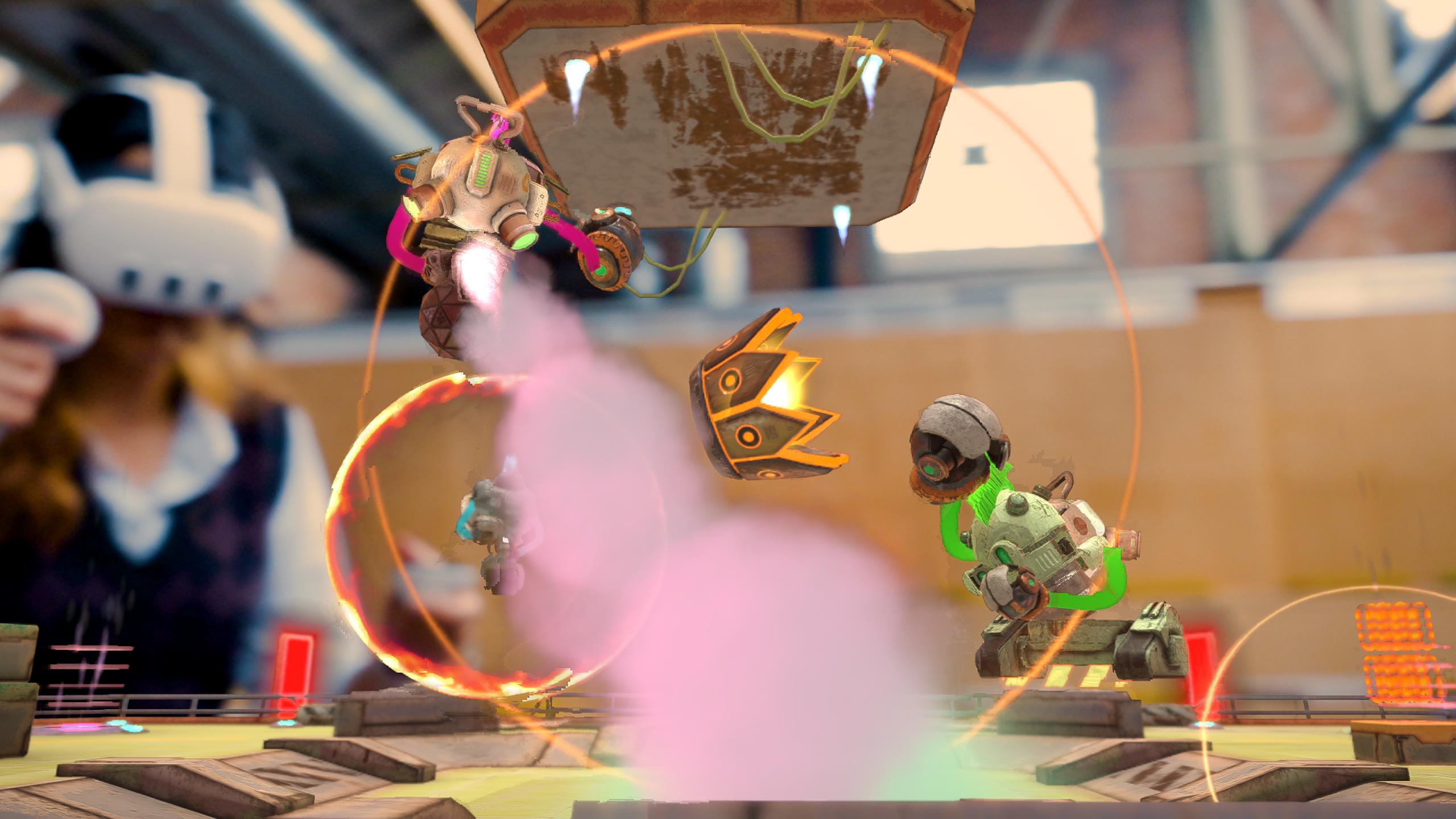 BAM — это захватывающая многопользовательская боевая игра в смешанной реальности (MR). Разместите свою настольную арену где угодно, масштабируйте ее, вращайте и управляйте своим миниатюрным роботом, чтобы одержать победу в боксерском поединке с реактивным ранцем. Захватите корону, потеряйте бомбу или выбейте противников с поля. Играйте в BAM онлайн или вместе с друзьями в лучшую игру для вечеринок. Простое в освоении управление и потрясающая графика меняют представление о MR-играх, делая BAM незаменимой игрой для всех возрастов.