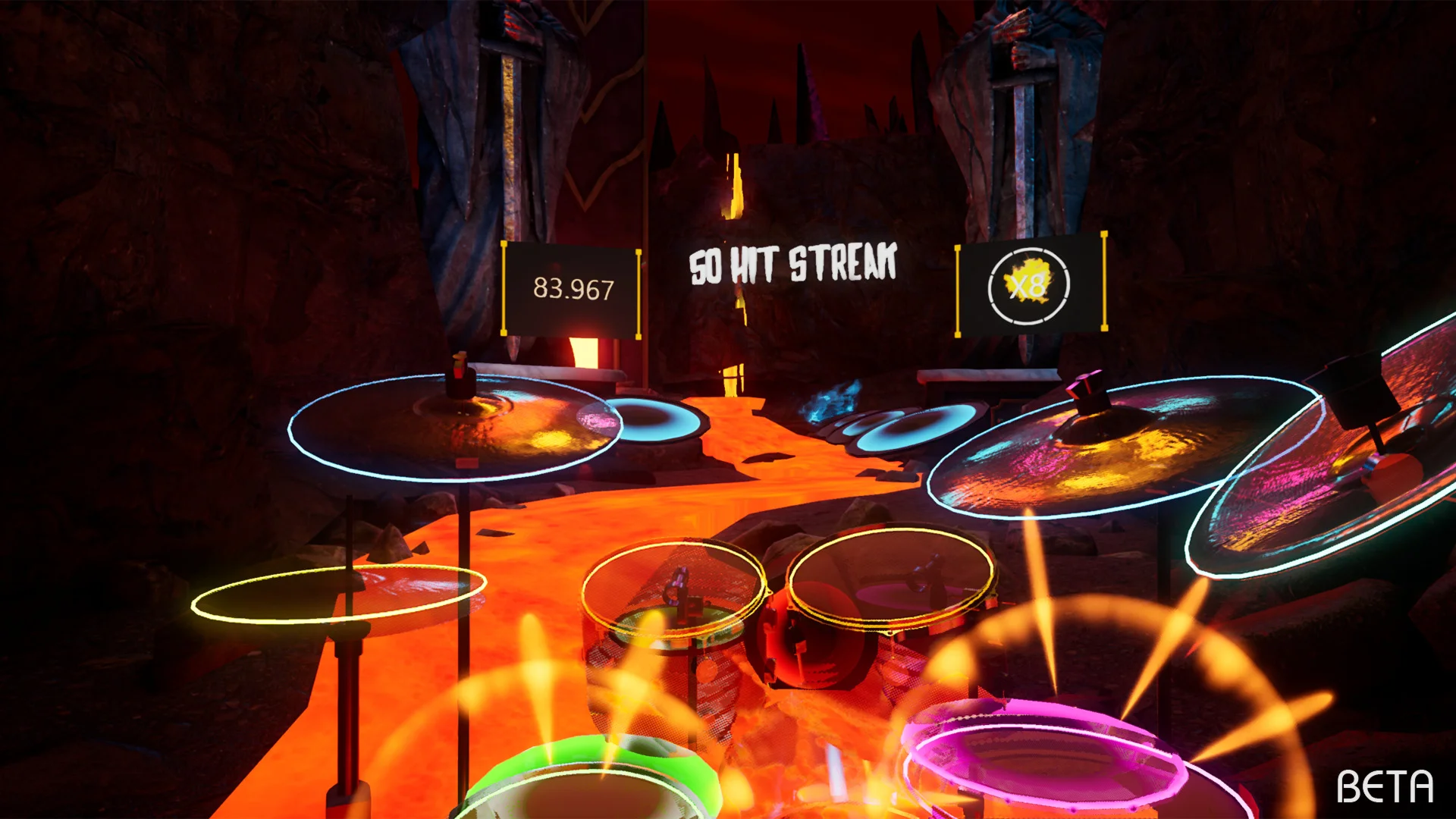 DrumBeats VR is a drumming music game for VR. Play on iconic drumkits and play in epic scenes! With your driving rhythm you become the backbone of every song you play. With a setlist of 21 songs and more on the way, you can play along to your favorite tunes and feel like you're part of the band